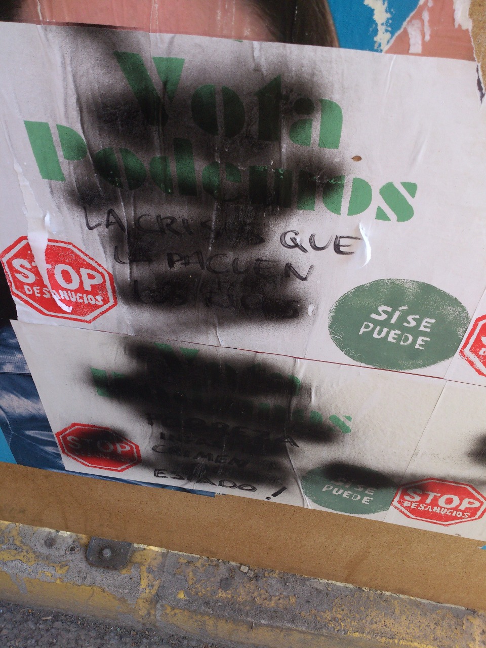 mente que se siente utiliza y enfadada con la publicación de carteles electorales de podemos, usando nuestro eslogan que utiliza las PAHS de stop desahucios, lo cual puede llevar a la confusión engañosa a los ciudadanos de Burjassot. La PAH Burjassot advierte a sus ciudadanos que la PAH Burjassot no está vinculada a podemos ni a ningún partido político. queremos transmitir a todos los ciudadanos que la PAH es apartidista porque sus decisiones son independientes, es decir, no están subordinadas ni se someten a ninguna otra organización, asociación, sindicato o partido político, Ninguna PAH apoyará, avalará o se vinculará como PAH a iniciativas electoralistas.los carteles los podeis delante del ambulatorio de la concordia.LA LUCHA DE LA PAH ES PARA LOGRAR QUE SE CUMPLAN LOS DERECHOS FUNDAMENTALES DE LAS PERSONAS,NO PARA SER UTILIZADOS PARA CONSEGUIR VOTOS POR NINGUN PARTIDO POLITICO.